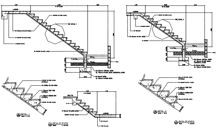 Details stair section detail dwg file, with naming detail, naming detail, foundation detail, etc.