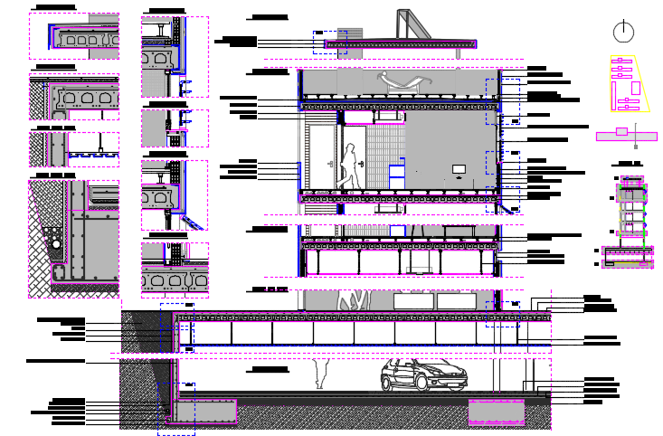 Metallic steel structure details plan detail dwg file, with naming detail, car parking detail, dimension detail, etc.