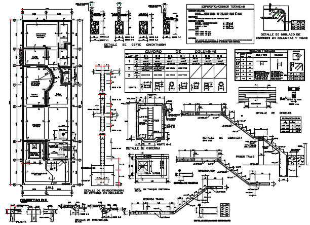 Construction building plan detail dwg file, with stair section detail, foundation section detail, column section detail, bolt nut detail, etc.