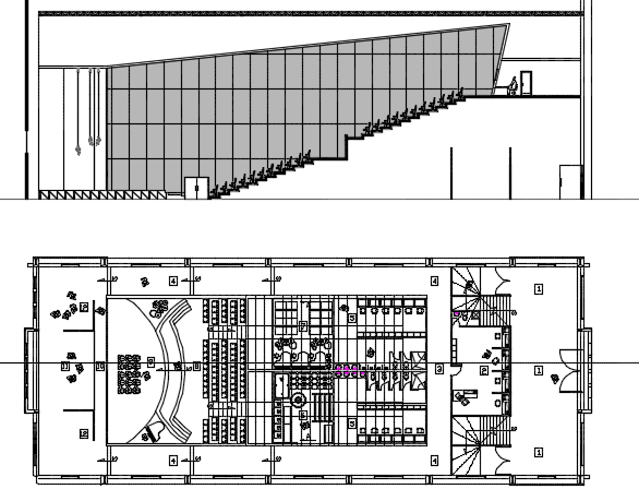 Theater plan and section detail dwg file, including section line detail, naming detail, chair section detail, etc.