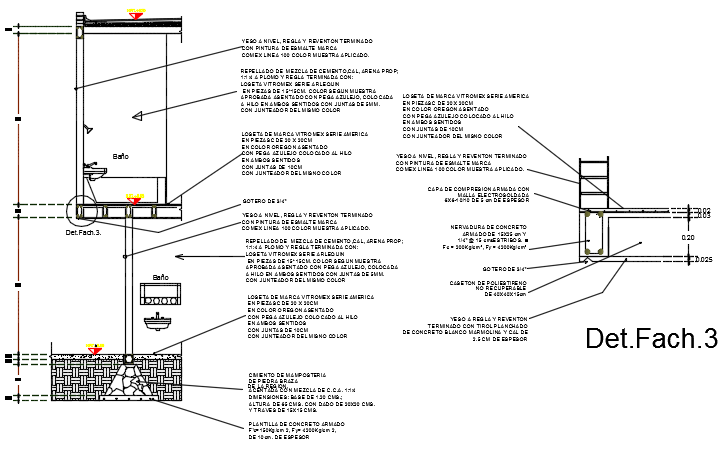 Foundation to wall section detail dwg file, with naming detail, dimension detail, etc.