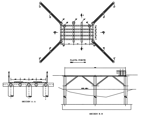 Bridge steel pipes plan detail dwg file