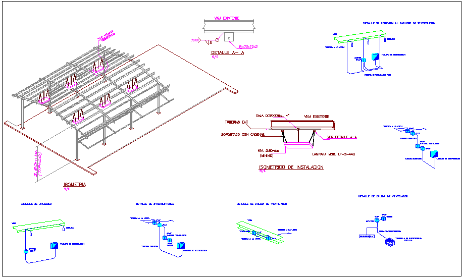 Steel structure view of education area with detail view of its connection in isomeric view dwg file in view of education area view with I beam joint with different channel joint view with electrical connection view detail.