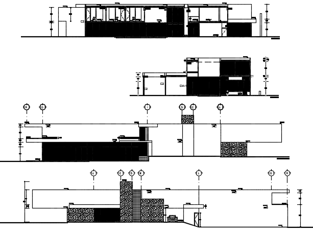 Elevation plan detail dwg file, including center line plan detail, dimension detail, naming detail, front elevation detail, left elevation detail, right elevation detail, back elevation detail, etc.