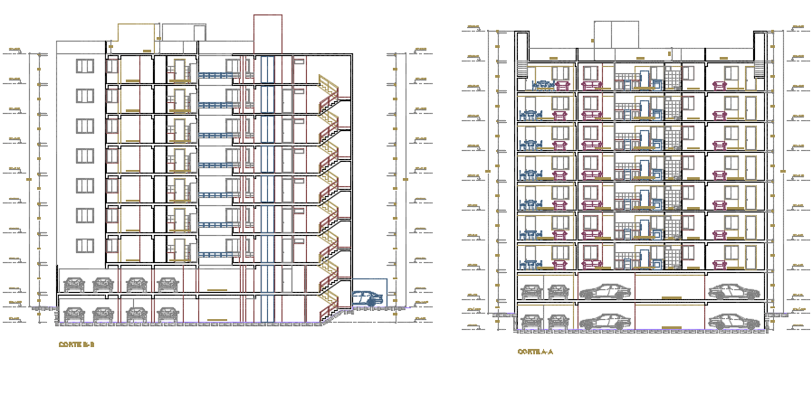 Section building detail dwg file, with section A-A’ detail, section B-B’ detail, basement car parking detail, dimension detail, etc.
