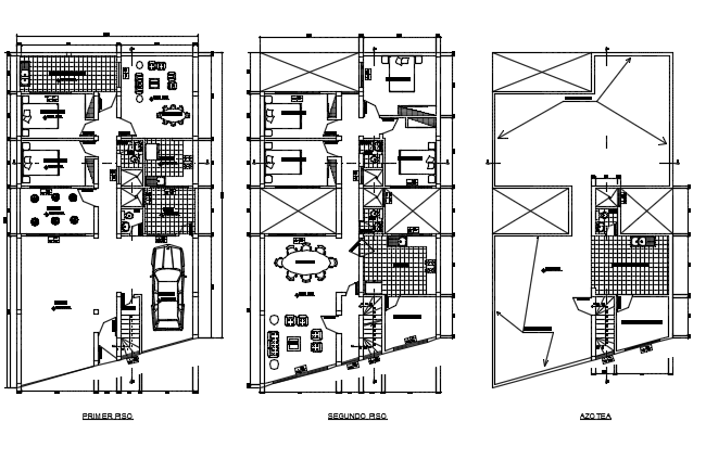 Housing plan detail dwg file, including ground floor to terrace floor plan detail, car parking detail, shaft detail, cut out detail, etc.