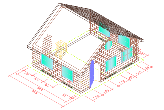 Chalet 3 d plan detail dwg file, including roof detail, door and window detail, dimension detail, etc.