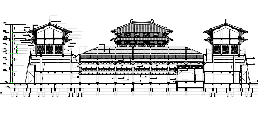 Chinese palace elevation detail dwg file, including foundation detail, leveling detail, dimension detail, naming detail, etc.