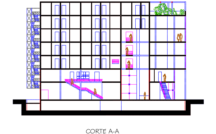 Section hotel detail dwg file, with stair section detail, naming detail, door and window detail, etc.