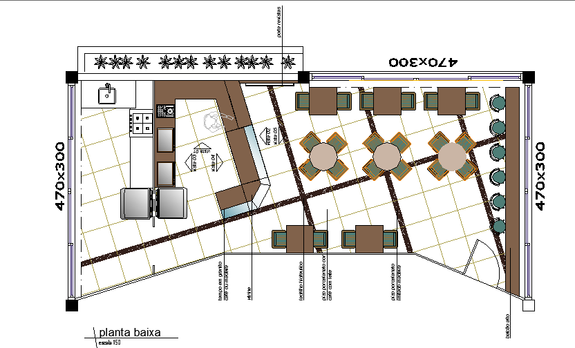 Cafeteria top view layout plan dwg file