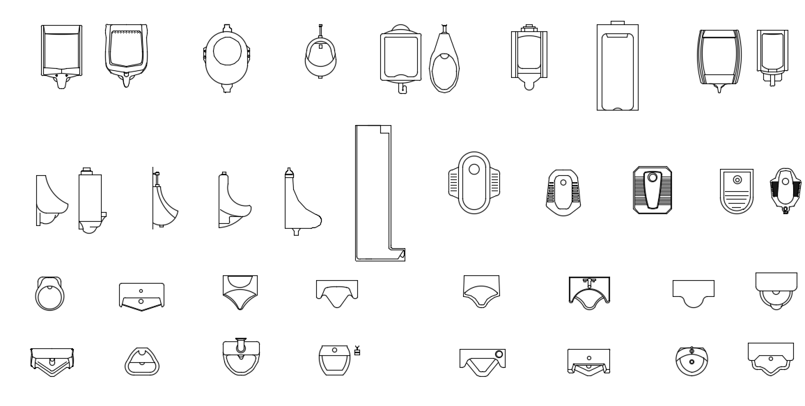 Urinal design dwg file. Drawings of urinals AutoCAD Blocks in plan and side elevation.