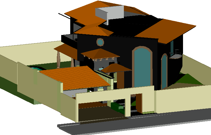 3 D house plan detail dwg file, including roof detail, swimming pool detail, balcony detail in reeling detail, etc.
