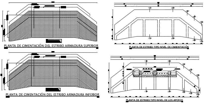 Upper and bottom abutment footing foundation plan detail dwg file, including dimension detail, naming detail, etc.
