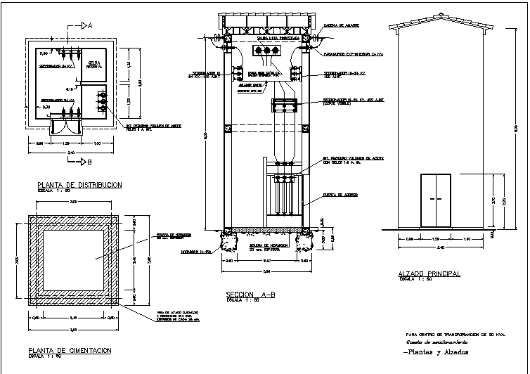 Cabin of work switch DWG file with 24 kv disconnector plan, front elevation,sectional detail etc