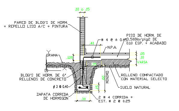 Foundation with concrete shoe DWG file with detail of compacted fill wil selected material,measurement detail,material detail etc.