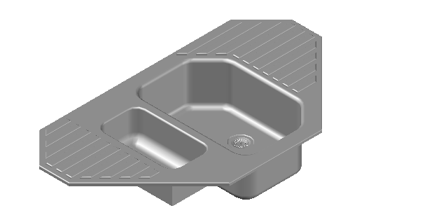 Corner kitchen sink top view 3d detail, here there is elevation detail of a sink used in kitchen 3d