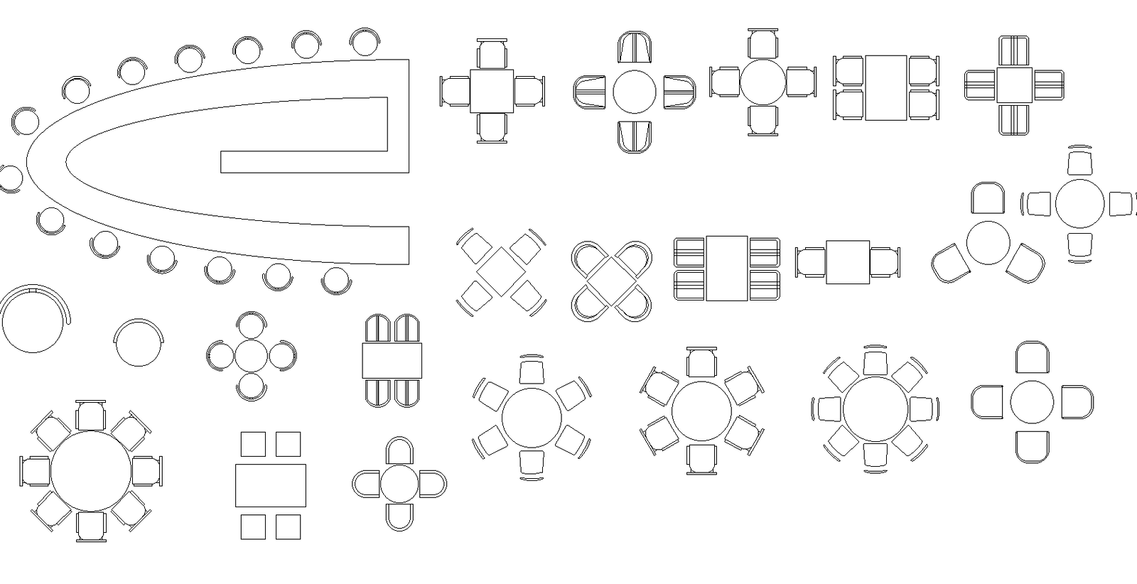 Dining set plan with four seatings, five seatings, etc.,