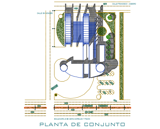 Plan fire station detail dwg file, car parking detail, dimension detail, road detail, naming detail, landscaping detail with plant detail, etc.
