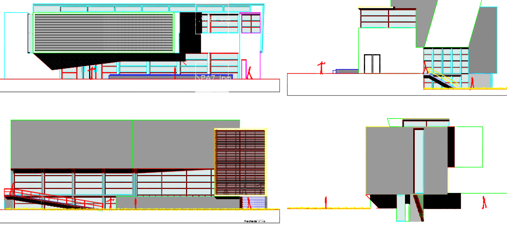 Library elevation detail dwg file, including dimension detail, naming detail, stair elevation detail, etc.