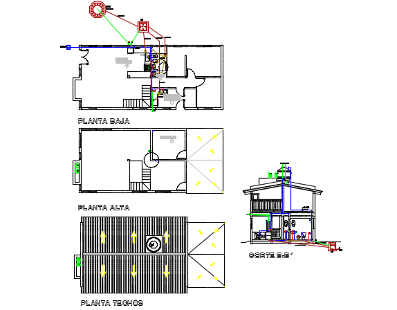 County house plan and section detail dwg file, with section B-B’ detail, cut out detail, roof plan detail, etc.