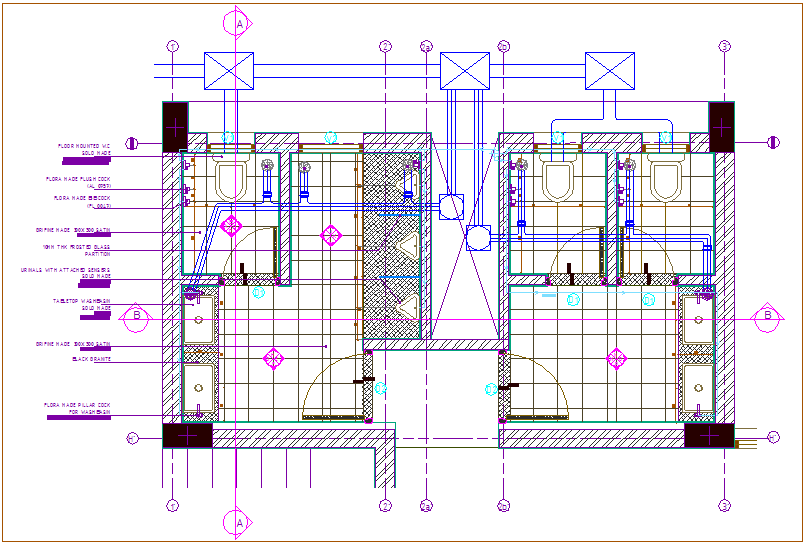 Admin public toilet plan view dwg file in plan with view of area and wall view with