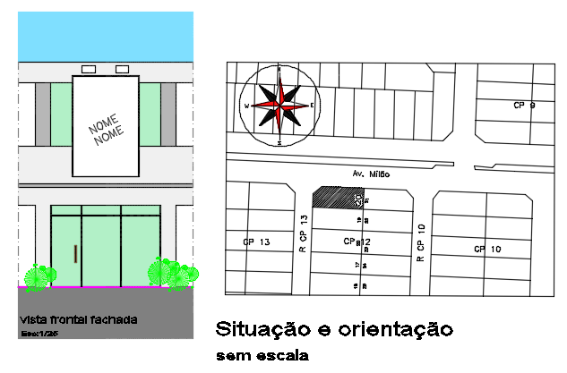 Site plan detail dwg file, with north direction detail, landscaping detail in plant and tree detail, scale 1:25 detail, etc.