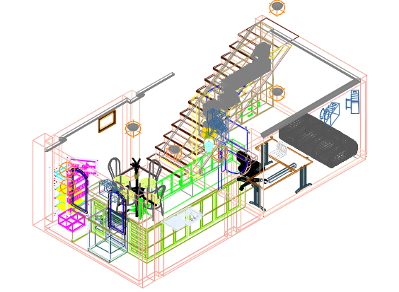 House 3 D plan detail dwg file, stair section detail, chair, bed, table, door and window detail, etc.
