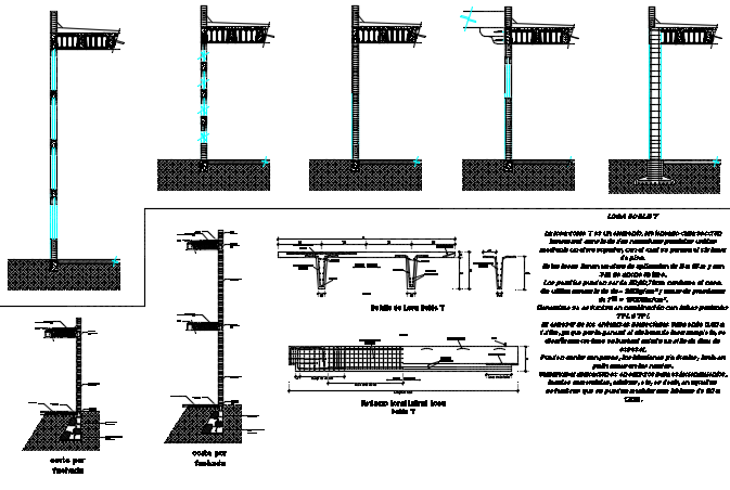 Wall section detail dwg file, including dimension detail, naming detail, reinforcement detail, etc.