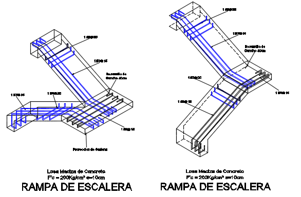 Ramp stair section detail dwg file, with reinforcement detail, naming detail, etc.
