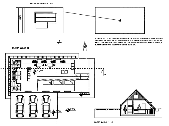 House plan detail dwg file, including car parking detail, north direction detail, section line detail, leveling detail, etc.