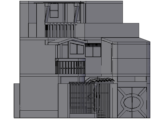 3 D house plan detail dwg file, ground floor to terrace floor plan detail, balcony reeling detail, etc.