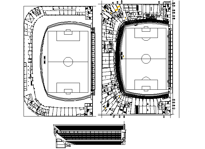 Football stadium plan detail dwg file, with section line detail, chair detail, naming detail, dimension detail, etc.