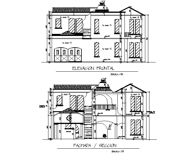 Font elevation and section detail dwg file, with dimension detail, naming detail, balcony detail, door and window detail, etc.