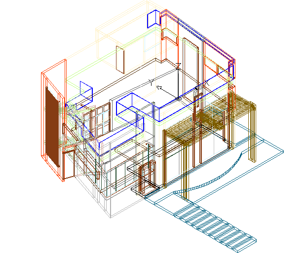 Family housing 3 D plan detail dwg file, with stair detail, door and window detail, main gate detail, etc.
