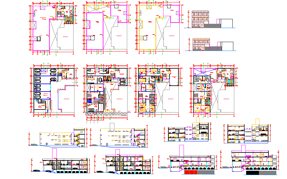 The plan also highlights the importance of natural light, ventilation, and professional space management to create a comfortable and hygienic setting for both patients and medical staff. Multiple elevation views, interior details, and structural references provide a clear understanding of the building form and architectural character. This AutoCAD design serves as a valuable resource for architects, civil engineers, designers, and students working on medical projects or research studies. It can be adapted for clinics, diagnostic centers, or healthcare units that require efficient space utilization and practical design solutions. The drawing offers a strong foundation for conceptual planning, technical coordination, and high quality architectural visualization.