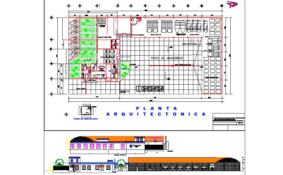 The architectural drawing also includes elevation views, exterior structure details, landscaped surroundings, and a designated control tower area that enhances operational management. Maneuvering zones for ambulances and medical transport are clearly illustrated to ensure proper movement within the facility. This plan is an excellent reference for architects, civil engineers, healthcare planners, and students who are developing designs for emergency centers, hospital extensions, or regional medical units. It supports conceptual planning, professional presentations, and execution stage coordination by offering a precise and practical representation of emergency service architecture. The design reflects thoughtful planning aimed at improving safety, speed, and overall patient care.