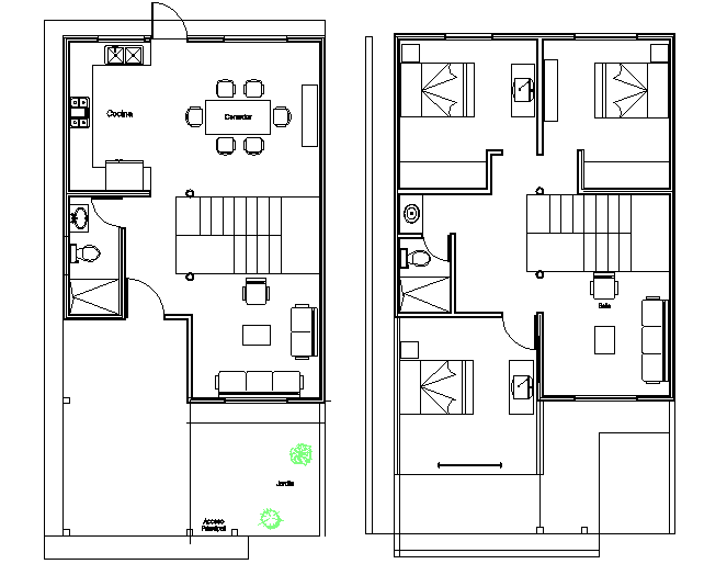 House 2 plants in 3 d plan detail dwg file