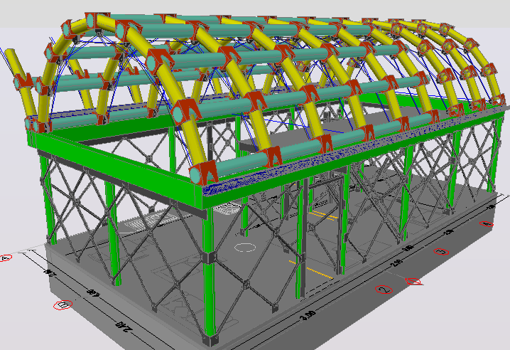 House and covering in recyclable materials card board tubes 3 D detail dwg file, with reinforcement detail, dimension detail, arc detail, etc.