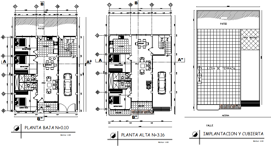 Planning house detail dwg file, including center line plan detail, section line detail, dimension detail, car parking detail, dimension detail, etc.