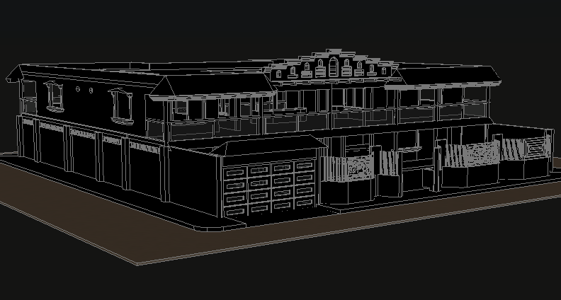 Residential house 3 D plan detail dwg file, with front elevation view detail, door and window detail, etc.