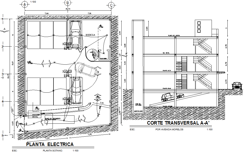 Electrical layout plan of car parking area, Car parking basement dwg file, top view detail of a car parking plan is shown