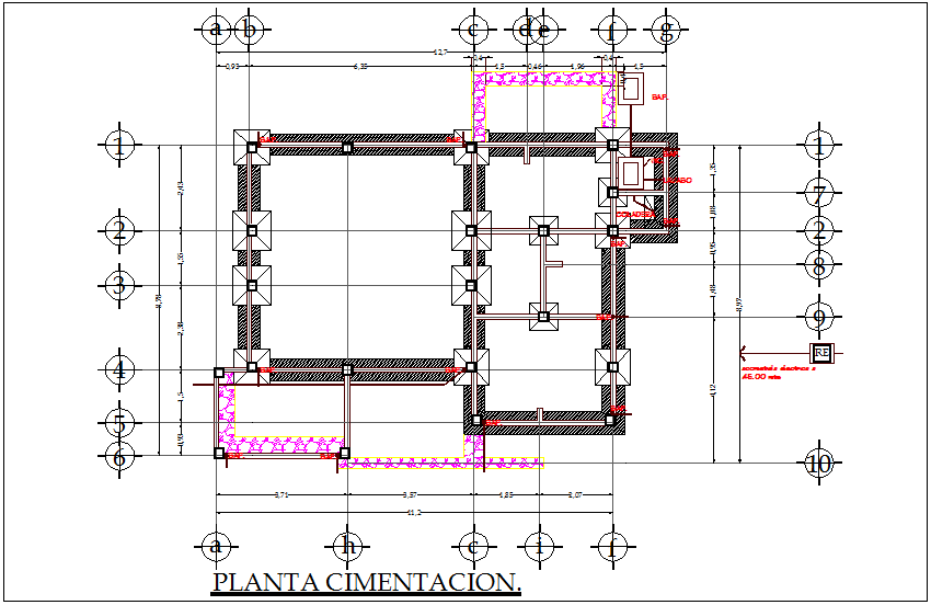 Foundation plan with column detail with construction view for plant dwg file in foundation plan with view of area view,wall and column view and different types of section view with support view with necessary dimension in plan.