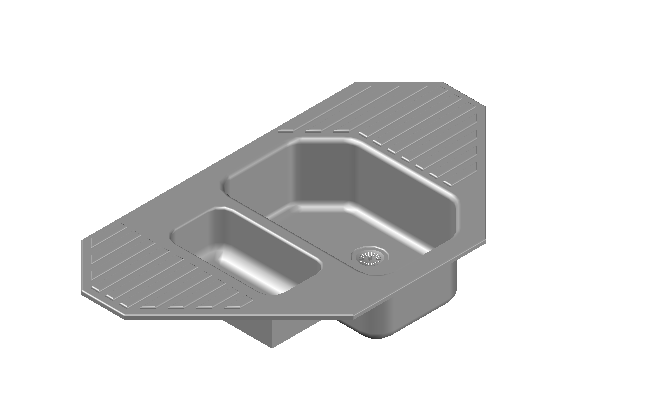 Corner kitchen sink 3d file, here there is 3d detailing of a kitchen sink , steel material finish in auto cad format