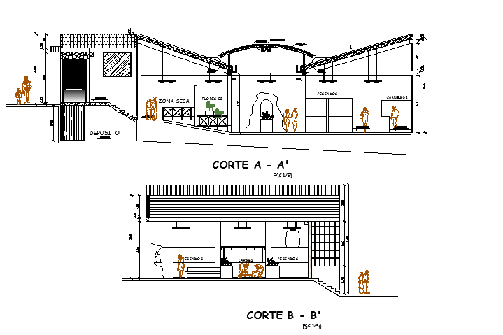 Sectional elevation of a posh buiiding, new and modern architecture details in auto cad format