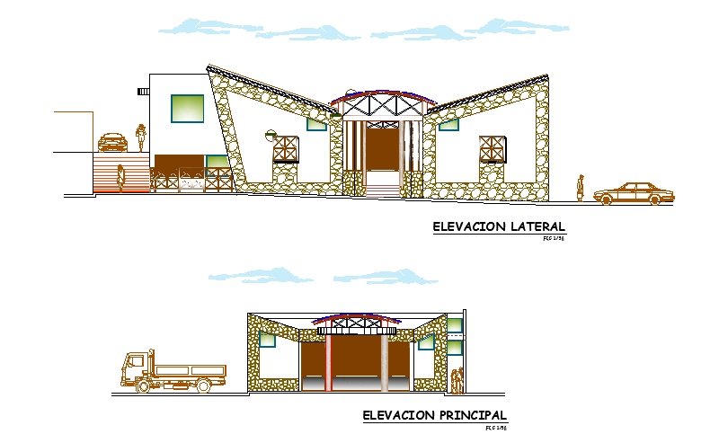 Front elevation of a building dwg file, Sectional elevation of a posh buiiding, new and modern architecture details in auto cad format
