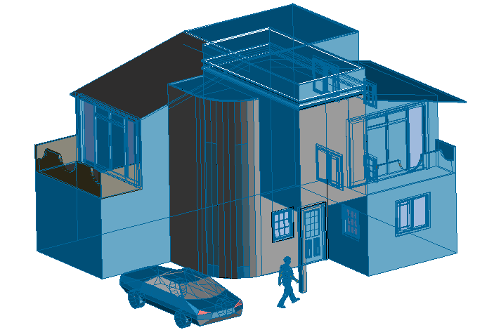 House two floors in 3 d plan detail dwg file, with car parking detail, door and window detail, etc.