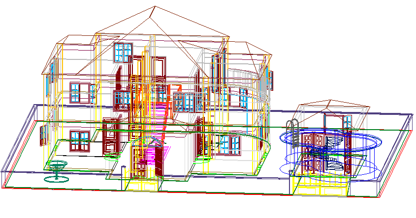 Family house in 3 d plan detail dwg file