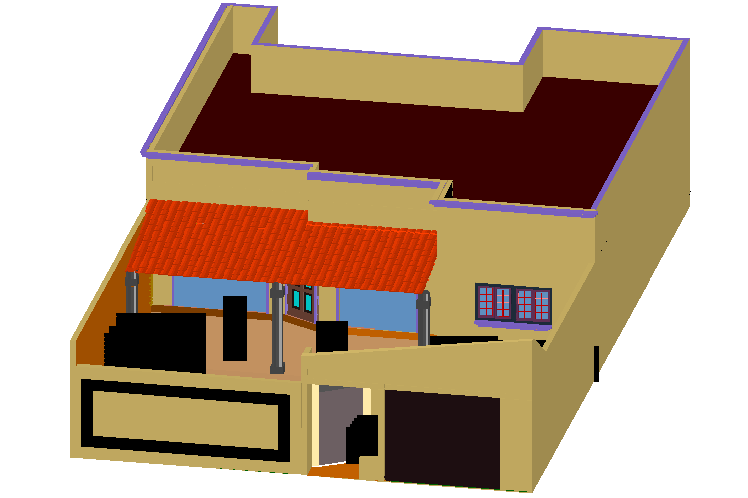 House 3 d plan detail dwg file, with ground floor detail, door and window detail, terrace plan detail, etc.
