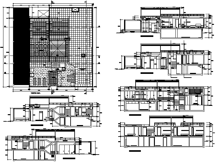 Temporary house in plan detail dwg file, with dimension detail, naming detail, elevation detail and section detail, etc.