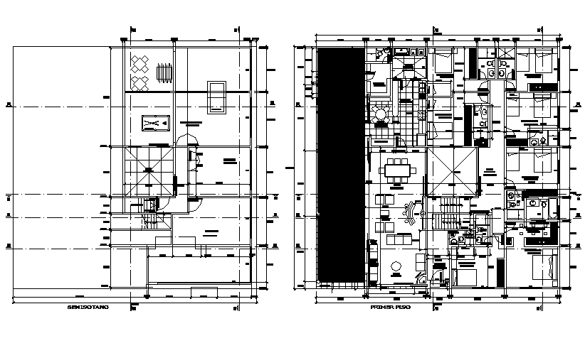 First floor and second floor plan detail dwg file, with section line detail, dimension detail, naming detail, cut out detail, table, chair, door and window detail, etc.